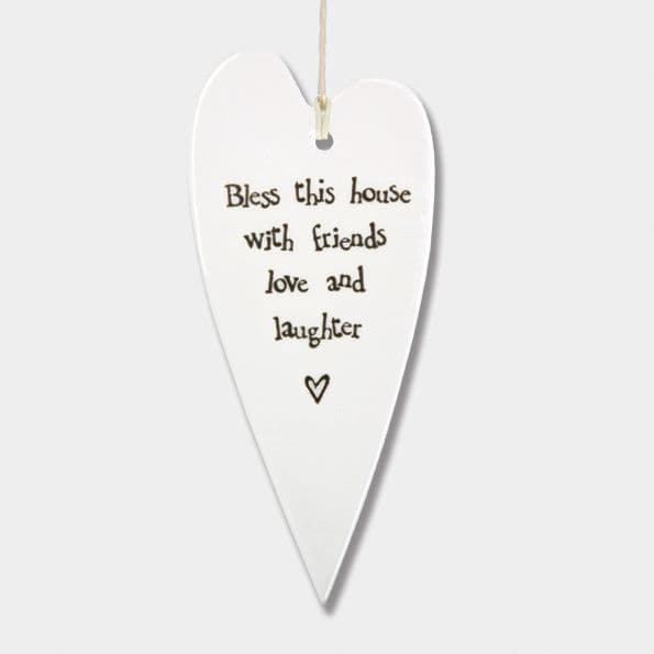 East Of India - Long Porcelain Heart - Bless This House