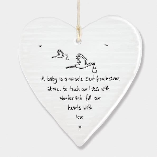 Made with porcelain, this beautiful ribbed heart is a lovely decoration for the home. It hangs easily with its attached piece of twine and comes in neutral colouring with its white/cream colour base and indented typical East of India black text - ideal for most rooms in the house.It reads