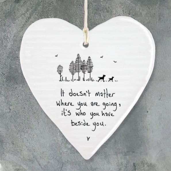 Made with porcelain, this beautiful ribbed heart is a lovely decoration for the home. It hangs easily with its attached piece of twine and comes in neutral colouring with its white/cream colour base and indented typical East of India black text - ideal for most rooms in the house.It reads